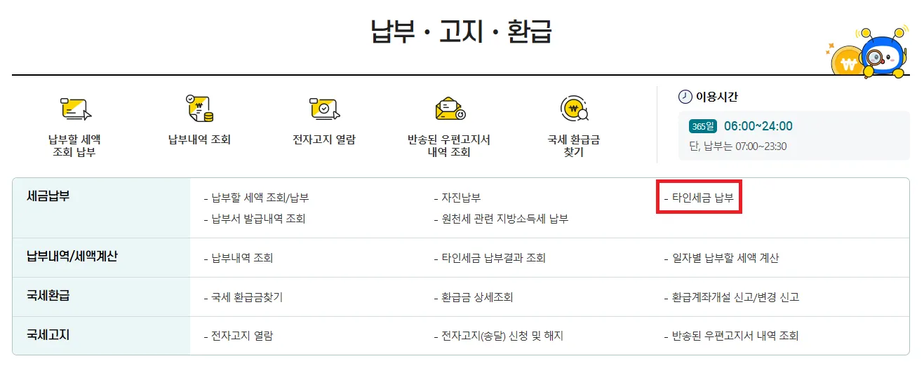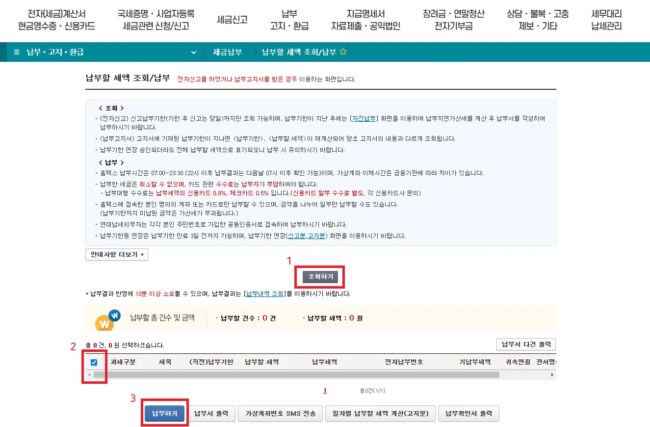 4. 조회하기 후 해당 되는 세금 선택 이후 납부하기 클릭