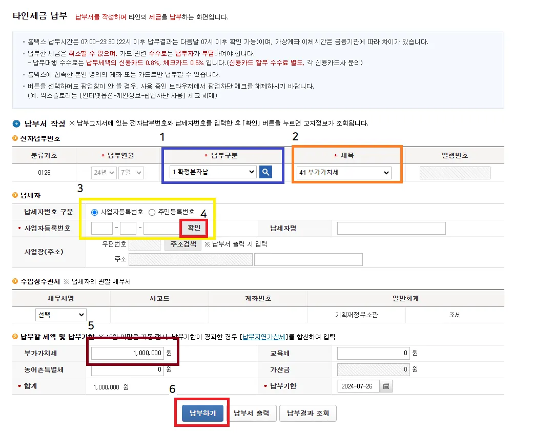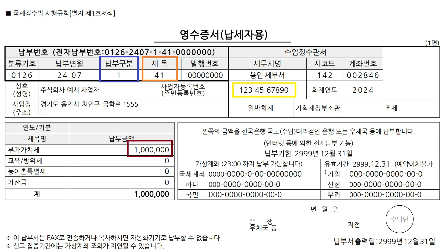 납부할세액에 대한 내용은 고지서나 납부서를 통해 미리 확인하시기 바라며, 관련 사항은 해당세무서로 문의